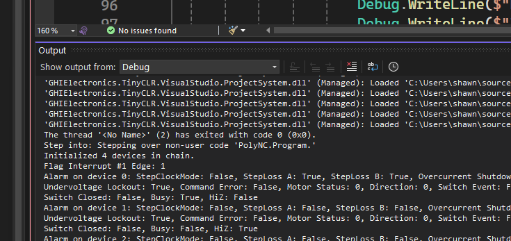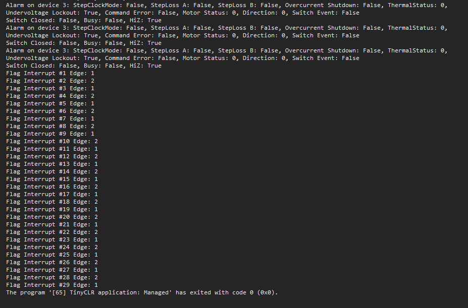 The PowerStep01 stepper drivers are producing the signal; Active Low. Are we thinking that they are constantly toggling the Flag pin? I’d have to break out the scope to find out (sigh).