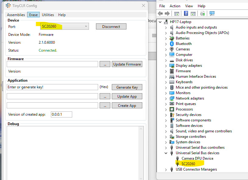 The Demo App launches and runs, but the FEZ is not recognized by my HP laptop Windows 11 Device Manager or the latest TinyCLR config app. I have reconnected and reset the SBC many times in an attempt to fix this. I have also tried the MFDeploy tool with the same result.
