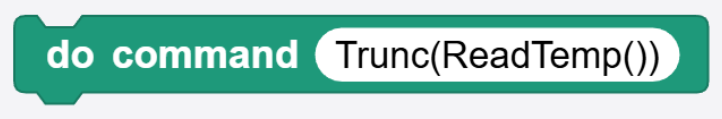 This can be accomplished by relying on the DUELink internal engine, which supports floating point numbers. Let’s say there is a ReadTemp() function that returns temperature reading. The temperature can be 24.56 for example. If we lose the decimal point, we end up with 24, which might be okay in some scenarios. An external system that needs to read the the value using Trunc(ReadTemp()). The block would look like this: