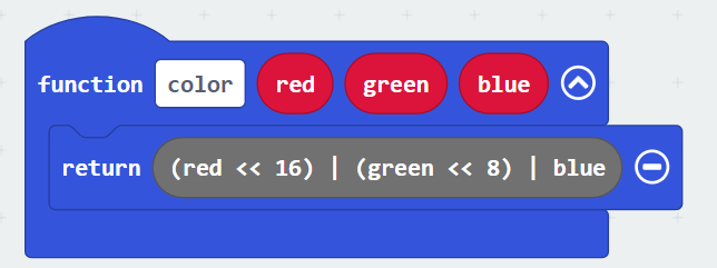 By the way, we need RRGGBB 24bit standard color and so we will make a function for that. Note how there is << shift operator in blocks. So, how did we do it?