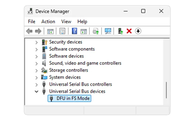 The is a useful feature when doing a firmware update as it gives the user the option to enter DFU mode without the need for pushing any buttons. Even more useful on modules that do not have LDR button. This is what device manger will see after erase all is done.