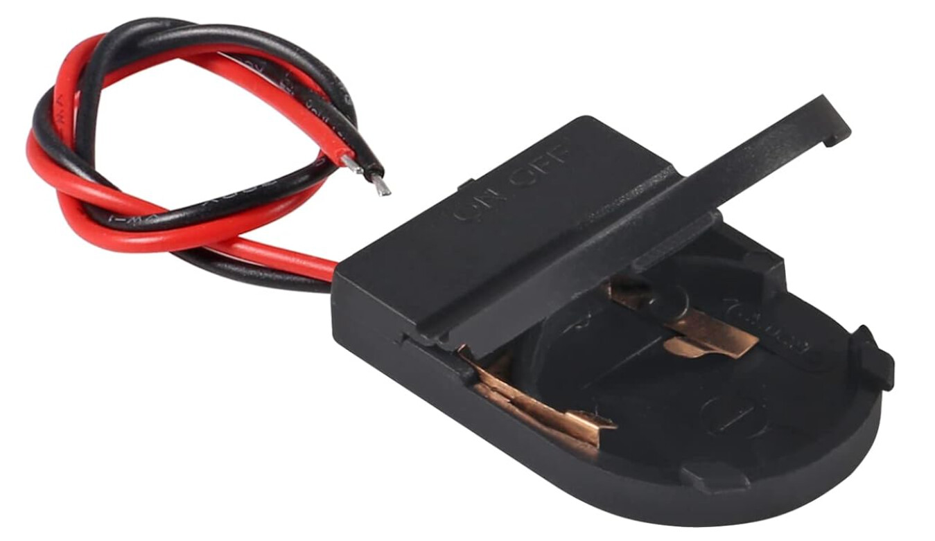 To wire the coin-cell, we used a holder with a built in switch. Those are available online, like on Amazon.