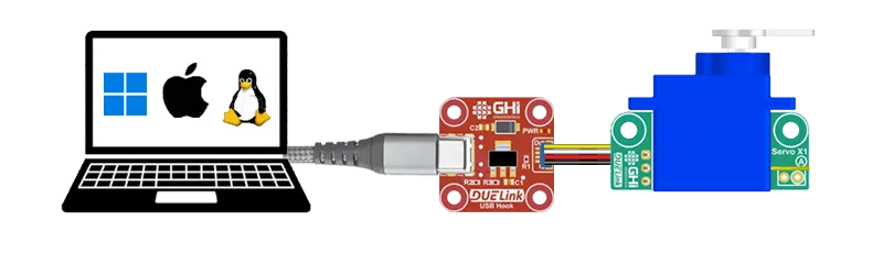 Other modules do not have a USB and require a USB adaptor. This can for example be a DUELink Servo motor connected to USB Hook.