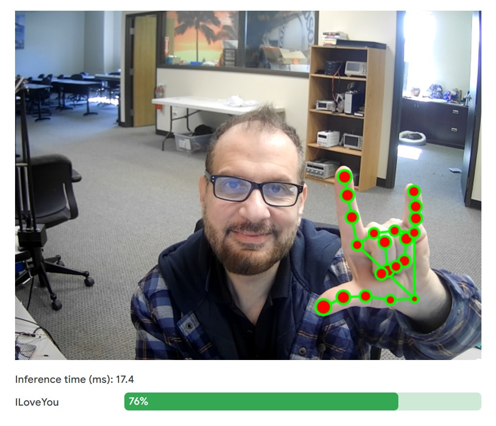 The first example is a “smile detector”. Ghizzy will “wink” at you every time you smile! We have another example for “hand movement” that detects blinks the eyes for hand movements. The next example counts visible fingers and blinks the eyes that many times. Finally, a “mouth open detection” is used to turn on the LEDs when an open mouth is detected.
